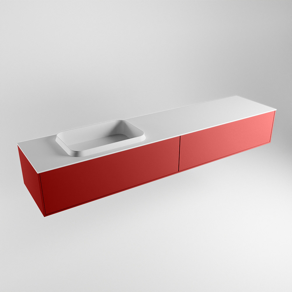El lavabo de inserción tiene un borde elevado con un lavamanos extra grande y profundo. Las formas redondas del lavamanos emanan una suavidad lujosa. La ubicación del grifo del lavabo en la esquina del lavamanos añade un efecto juguetón adicional. El mueble de baño del conjunto ERIN cuenta con un cajón “push to open”. Esto le proporciona al mueble de baño una apariencia hermosa y aerodinámica que se adapta a cualquier estilo de baño.