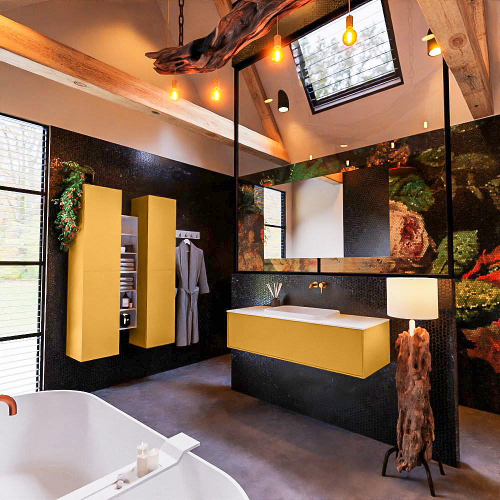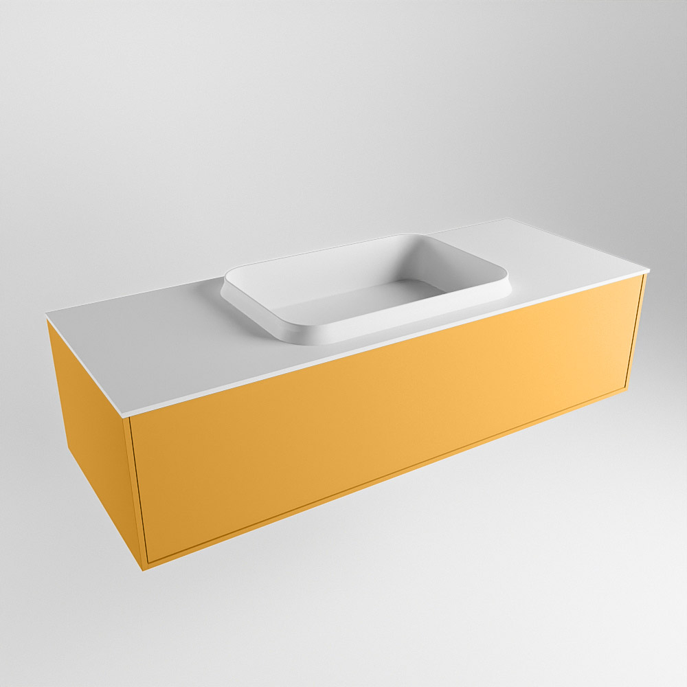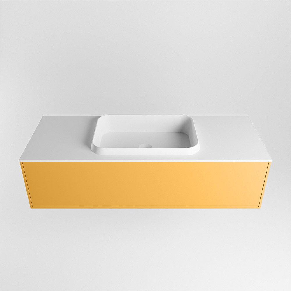 MONDIAZ ERIN 120cm mueble de baño color Ocher 1 cajón. Lavabo RIDGE Centro sin orificio color Talc.