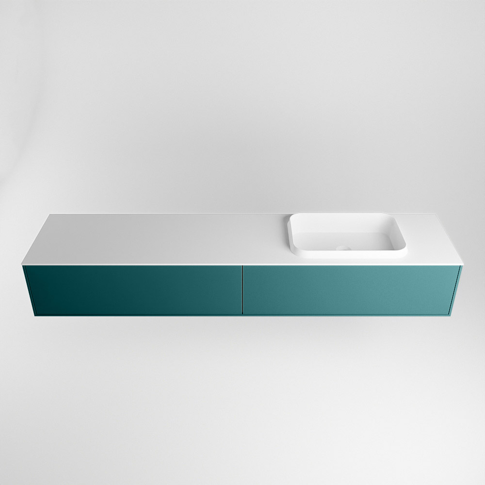 El lavabo de inserción tiene un borde elevado con un lavamanos extra grande y profundo. Las formas redondas del lavamanos emanan una suavidad lujosa. La ubicación del grifo del lavabo en la esquina del lavamanos añade un efecto juguetón adicional. El mueble de baño del conjunto ERIN cuenta con un cajón “push to open”. Esto le proporciona al mueble de baño una apariencia hermosa y aerodinámica que se adapta a cualquier estilo de baño.