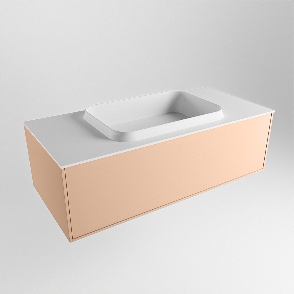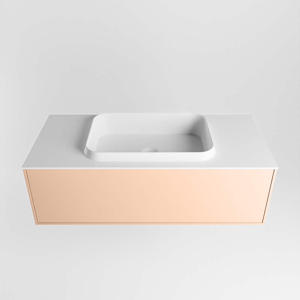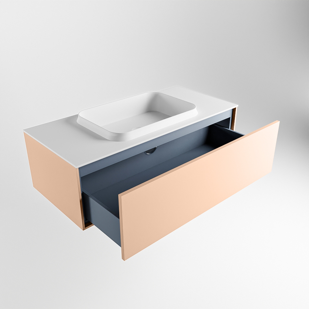 El lavabo de inserción tiene un borde elevado con un lavamanos extra grande y profundo. Las formas redondas del lavamanos emanan una suavidad lujosa. La ubicación del grifo del lavabo en la esquina del lavamanos añade un efecto juguetón adicional. El mueble de baño del conjunto ERIN cuenta con un cajón “push to open”. Esto le proporciona al mueble de baño una apariencia hermosa y aerodinámica que se adapta a cualquier estilo de baño.