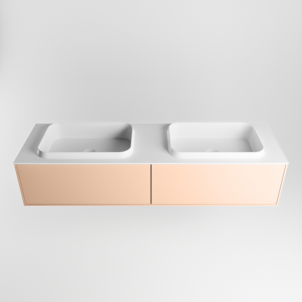 MONDIAZ ERIN 150cm mueble de baño color Rosee 2 cajones. Lavabo RIDGE Doble 2 orificios color Talc.