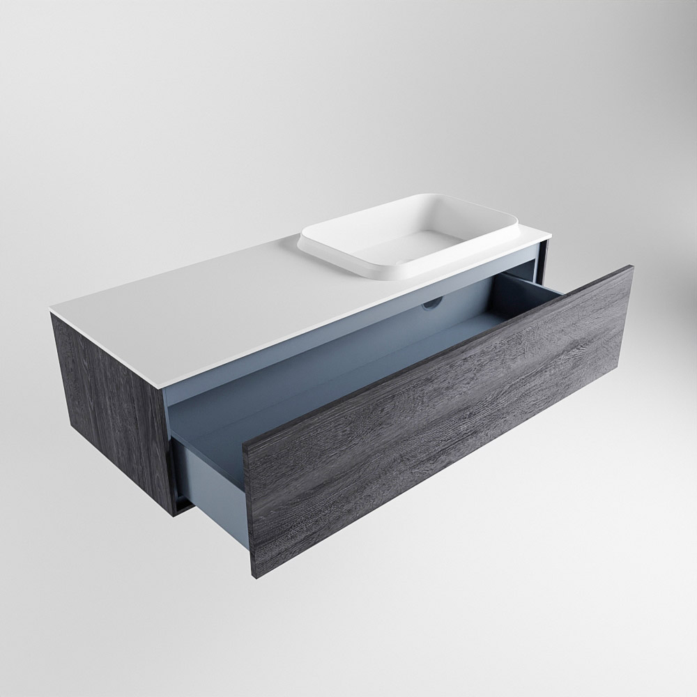 El lavabo de inserción tiene un borde elevado con un lavamanos extra grande y profundo. Las formas redondas del lavamanos emanan una suavidad lujosa. La ubicación del grifo del lavabo en la esquina del lavamanos añade un efecto juguetón adicional. El mueble de baño del conjunto ERIN cuenta con un cajón “push to open”. Esto le proporciona al mueble de baño una apariencia hermosa y aerodinámica que se adapta a cualquier estilo de baño.