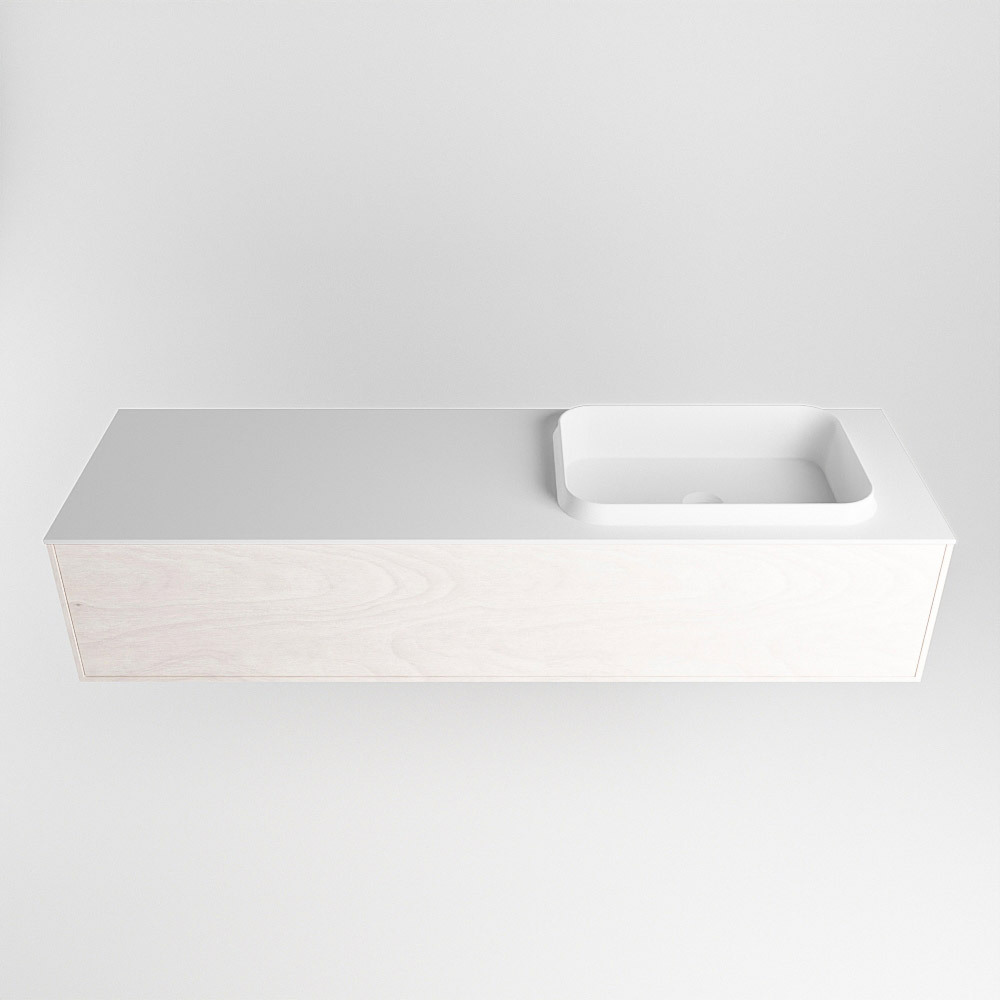El lavabo de inserción tiene un borde elevado con un lavamanos extra grande y profundo. Las formas redondas del lavamanos emanan una suavidad lujosa. La ubicación del grifo del lavabo en la esquina del lavamanos añade un efecto juguetón adicional. El mueble de baño del conjunto ERIN cuenta con un cajón “push to open”. Esto le proporciona al mueble de baño una apariencia hermosa y aerodinámica que se adapta a cualquier estilo de baño.