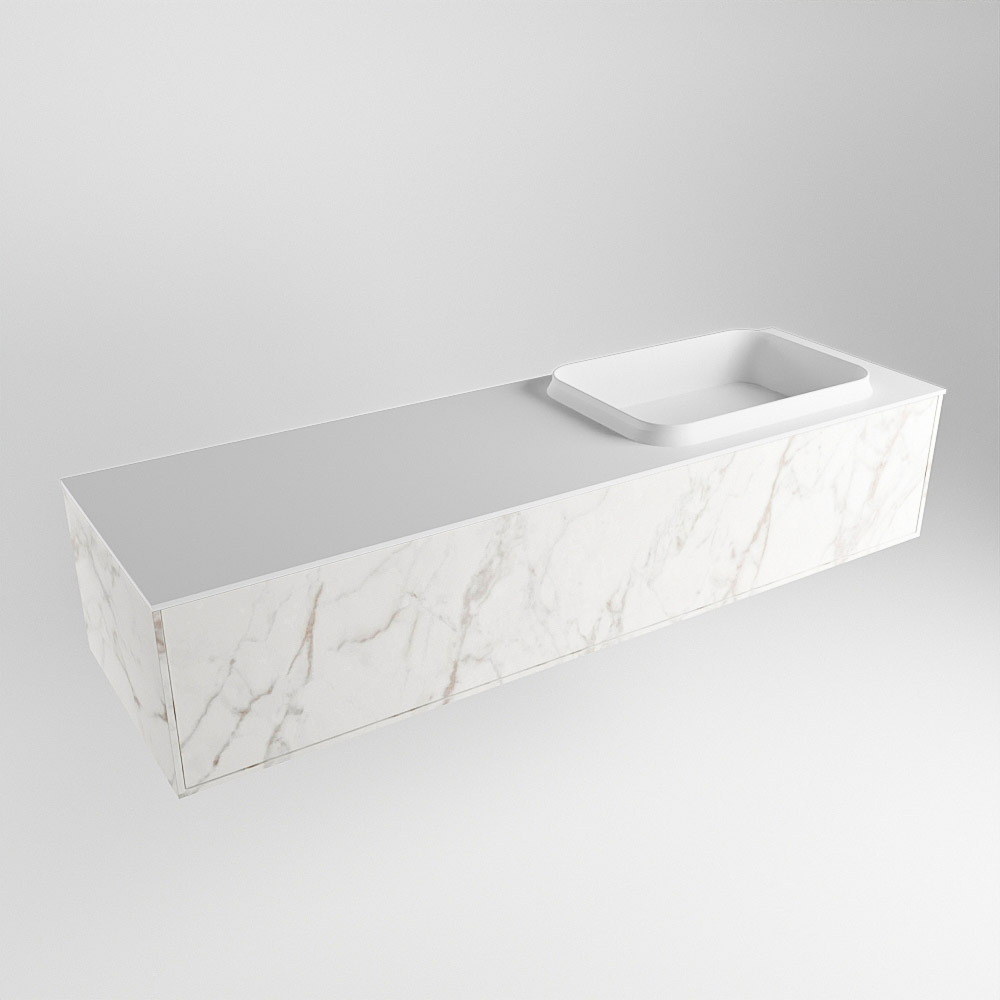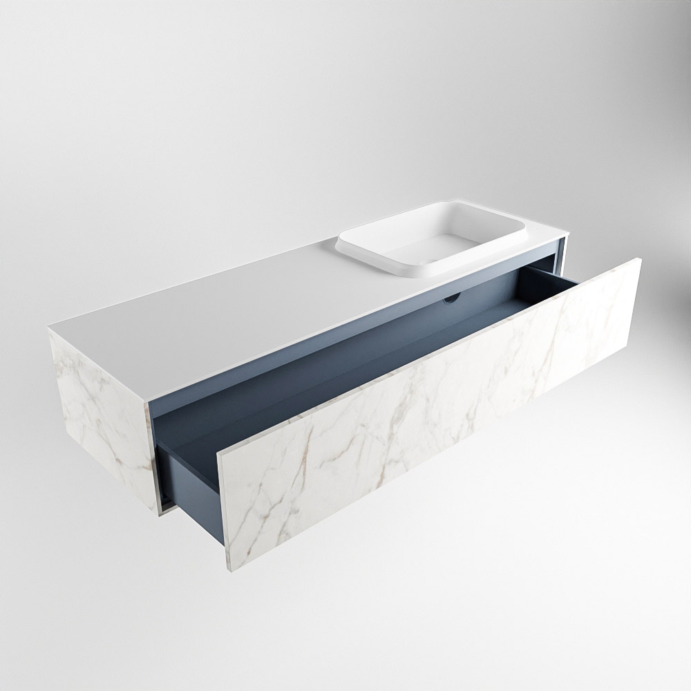 El lavabo de inserción tiene un borde elevado con un lavamanos extra grande y profundo. Las formas redondas del lavamanos emanan una suavidad lujosa. La ubicación del grifo del lavabo en la esquina del lavamanos añade un efecto juguetón adicional. El mueble de baño del conjunto ERIN cuenta con un cajón “push to open”. Esto le proporciona al mueble de baño una apariencia hermosa y aerodinámica que se adapta a cualquier estilo de baño.