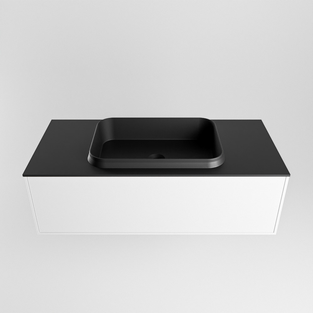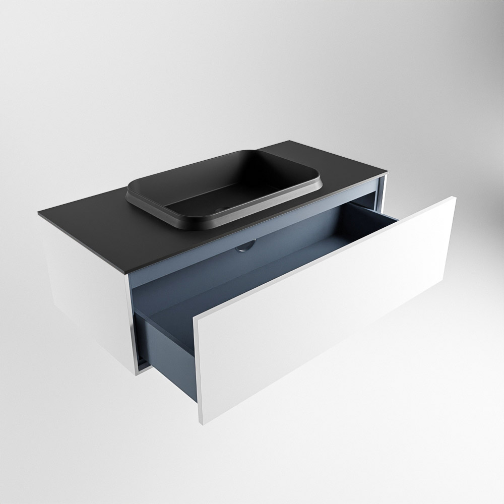 MONDIAZ ERIN 100cm mueble de baño color Talc 1 cajón. Lavabo RIDGE Centro sin orificio color Urban.