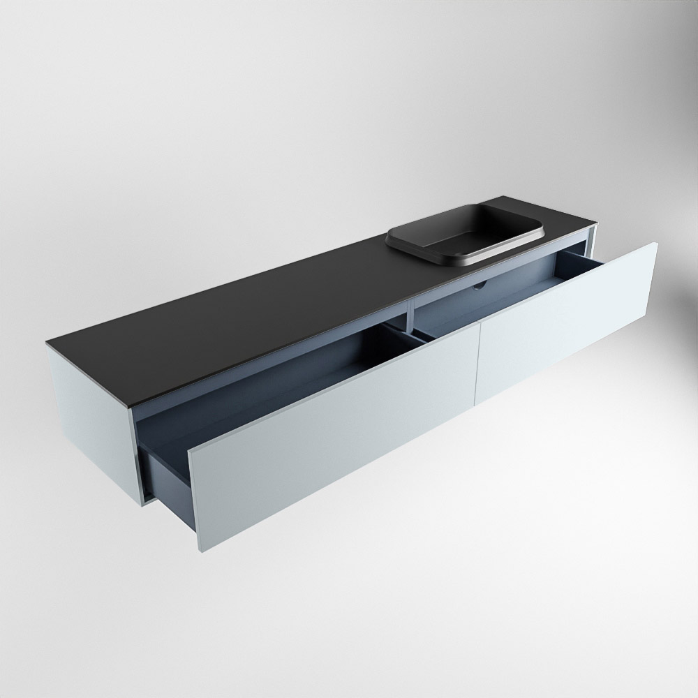 El lavabo de inserción tiene un borde elevado con un lavamanos extra grande y profundo. Las formas redondas del lavamanos emanan una suavidad lujosa. La ubicación del grifo del lavabo en la esquina del lavamanos añade un efecto juguetón adicional. El mueble de baño del conjunto ERIN cuenta con un cajón “push to open”. Esto le proporciona al mueble de baño una apariencia hermosa y aerodinámica que se adapta a cualquier estilo de baño.