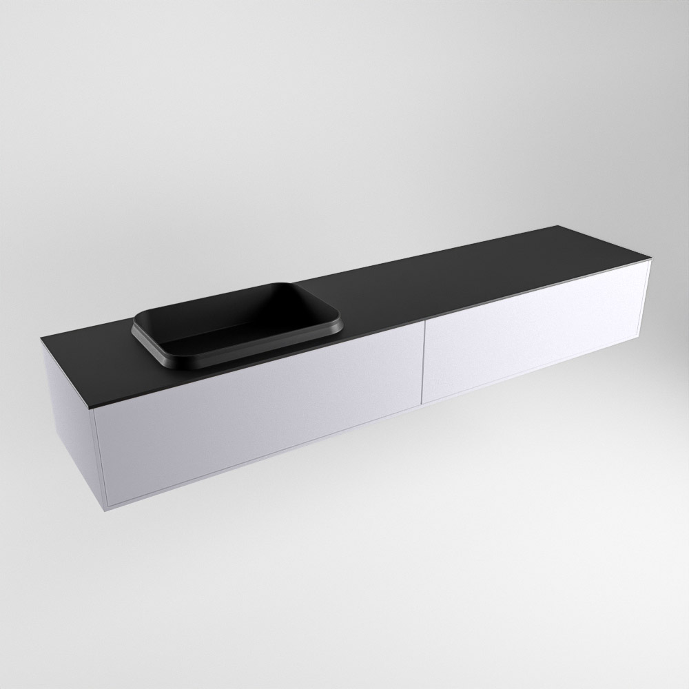 El lavabo de inserción tiene un borde elevado con un lavamanos extra grande y profundo. Las formas redondas del lavamanos emanan una suavidad lujosa. La ubicación del grifo del lavabo en la esquina del lavamanos añade un efecto juguetón adicional. El mueble de baño del conjunto ERIN cuenta con un cajón “push to open”. Esto le proporciona al mueble de baño una apariencia hermosa y aerodinámica que se adapta a cualquier estilo de baño.