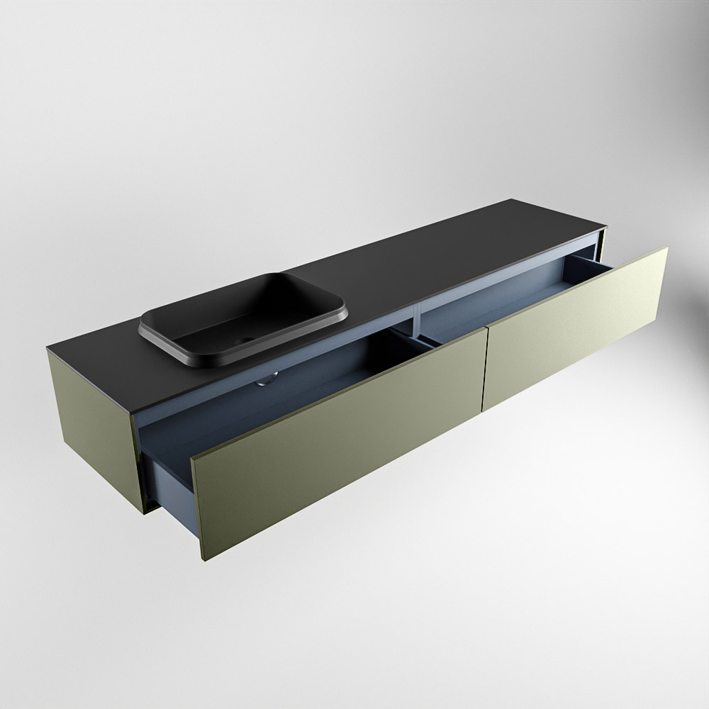 El lavabo de inserción tiene un borde elevado con un lavamanos extra grande y profundo. Las formas redondas del lavamanos emanan una suavidad lujosa. La ubicación del grifo del lavabo en la esquina del lavamanos añade un efecto juguetón adicional. El mueble de baño del conjunto ERIN cuenta con un cajón “push to open”. Esto le proporciona al mueble de baño una apariencia hermosa y aerodinámica que se adapta a cualquier estilo de baño.