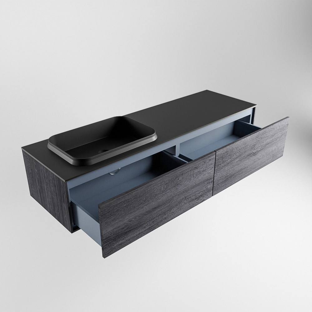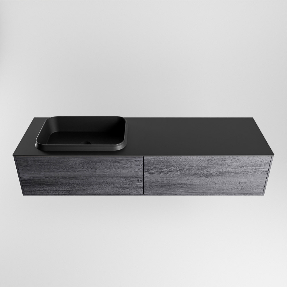 MONDIAZ ERIN 150cm mueble de baño color Antracite 2 cajones. Lavabo RIDGE Izquierda sin orificio color Urban.