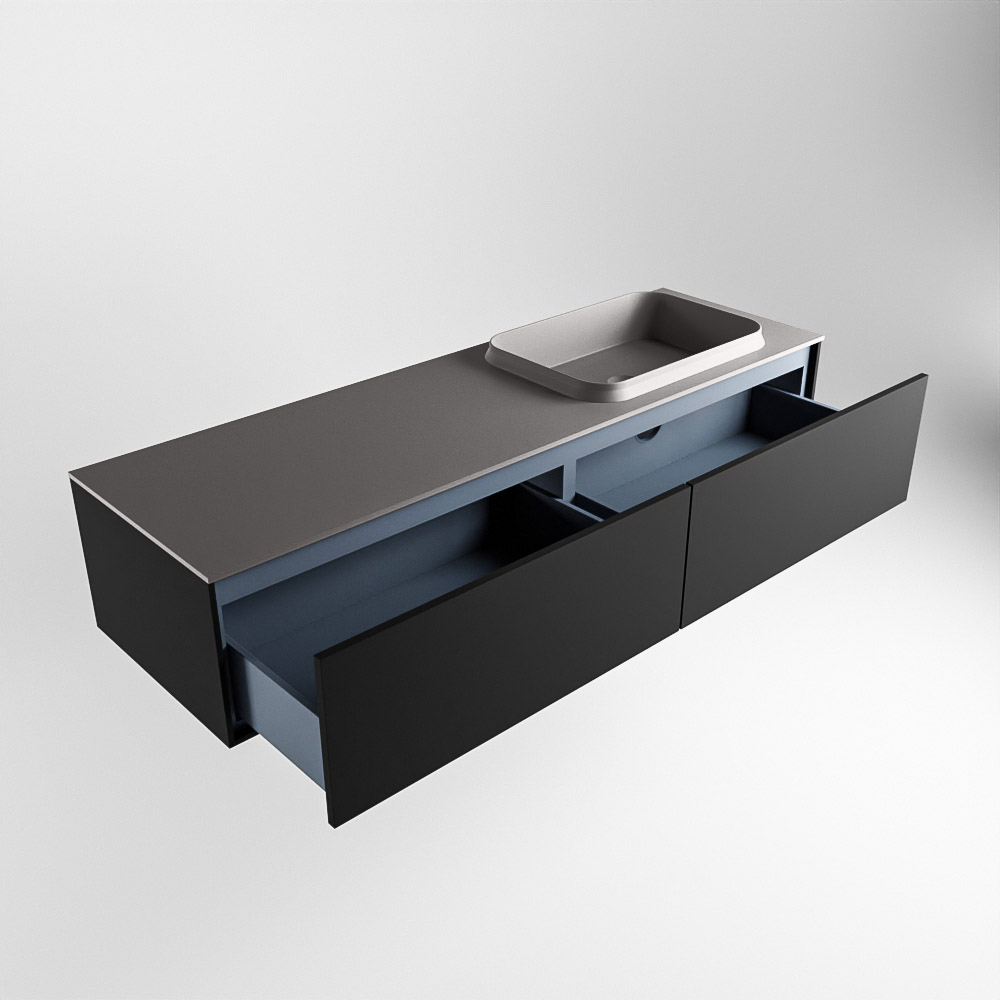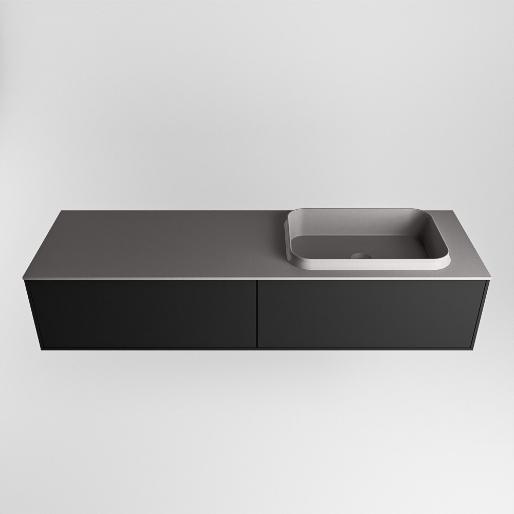 MONDIAZ ERIN 150cm mueble de baño color Urban 2 cajones. Lavabo RIDGE Derecho sin orificio color Dark Grey.