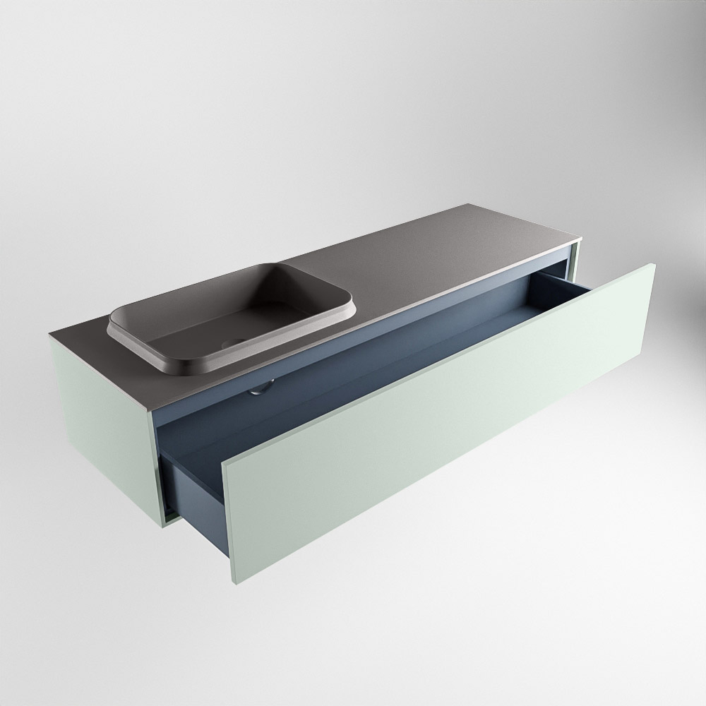 El lavabo de inserción tiene un borde elevado con un lavamanos extra grande y profundo. Las formas redondas del lavamanos emanan una suavidad lujosa. La ubicación del grifo del lavabo en la esquina del lavamanos añade un efecto juguetón adicional. El mueble de baño del conjunto ERIN cuenta con un cajón “push to open”. Esto le proporciona al mueble de baño una apariencia hermosa y aerodinámica que se adapta a cualquier estilo de baño.