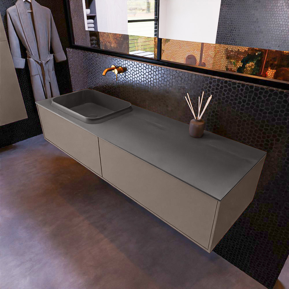 El lavabo de inserción tiene un borde elevado con un lavamanos extra grande y profundo. Las formas redondas del lavamanos emanan una suavidad lujosa. La ubicación del grifo del lavabo en la esquina del lavamanos añade un efecto juguetón adicional. El mueble de baño del conjunto ERIN cuenta con un cajón “push to open”. Esto le proporciona al mueble de baño una apariencia hermosa y aerodinámica que se adapta a cualquier estilo de baño.
