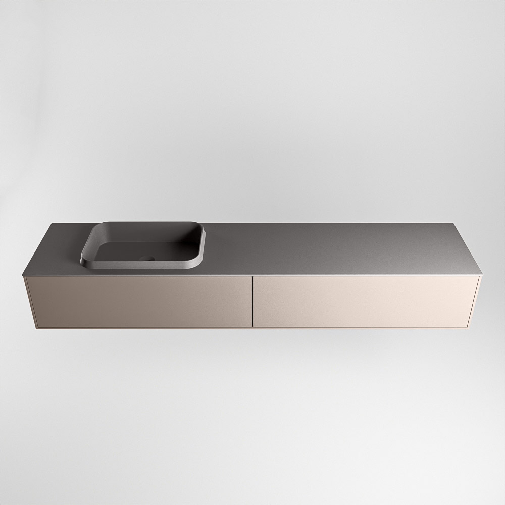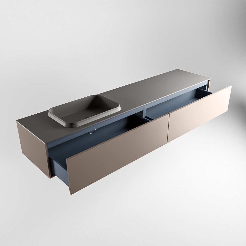 El lavabo de inserción tiene un borde elevado con un lavamanos extra grande y profundo. Las formas redondas del lavamanos emanan una suavidad lujosa. La ubicación del grifo del lavabo en la esquina del lavamanos añade un efecto juguetón adicional. El mueble de baño del conjunto ERIN cuenta con un cajón “push to open”. Esto le proporciona al mueble de baño una apariencia hermosa y aerodinámica que se adapta a cualquier estilo de baño.