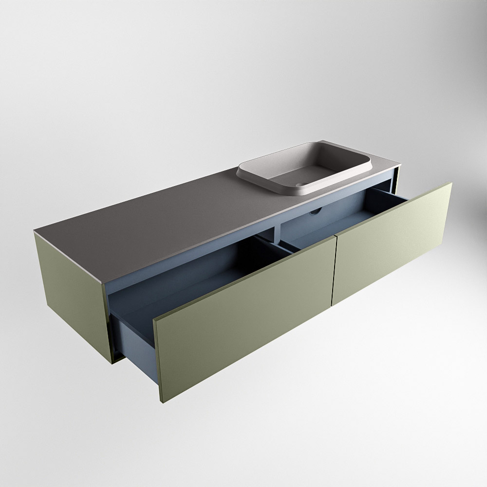El lavabo de inserción tiene un borde elevado con un lavamanos extra grande y profundo. Las formas redondas del lavamanos emanan una suavidad lujosa. La ubicación del grifo del lavabo en la esquina del lavamanos añade un efecto juguetón adicional. El mueble de baño del conjunto ERIN cuenta con un cajón “push to open”. Esto le proporciona al mueble de baño una apariencia hermosa y aerodinámica que se adapta a cualquier estilo de baño.