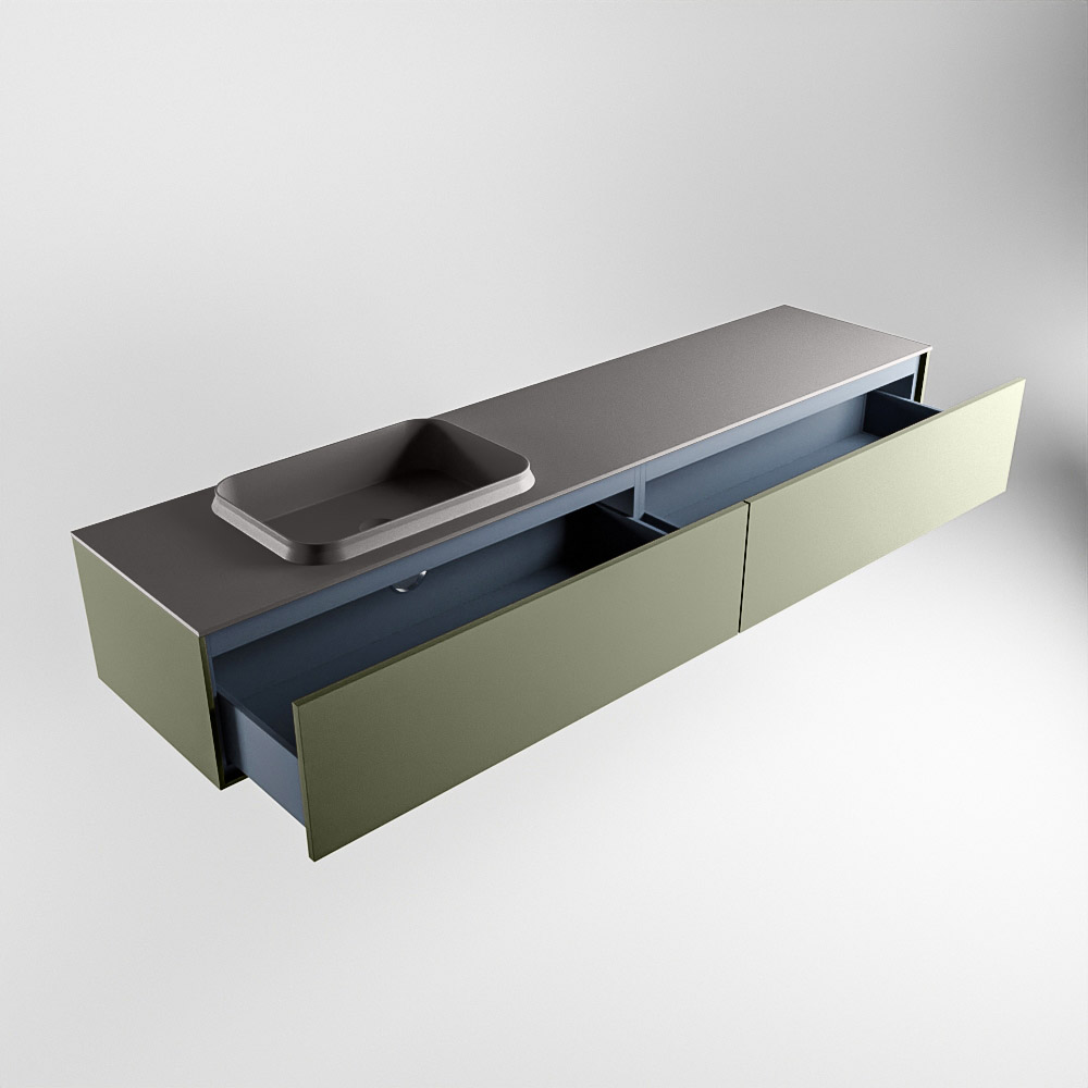 El lavabo de inserción tiene un borde elevado con un lavamanos extra grande y profundo. Las formas redondas del lavamanos emanan una suavidad lujosa. La ubicación del grifo del lavabo en la esquina del lavamanos añade un efecto juguetón adicional. El mueble de baño del conjunto ERIN cuenta con un cajón “push to open”. Esto le proporciona al mueble de baño una apariencia hermosa y aerodinámica que se adapta a cualquier estilo de baño.