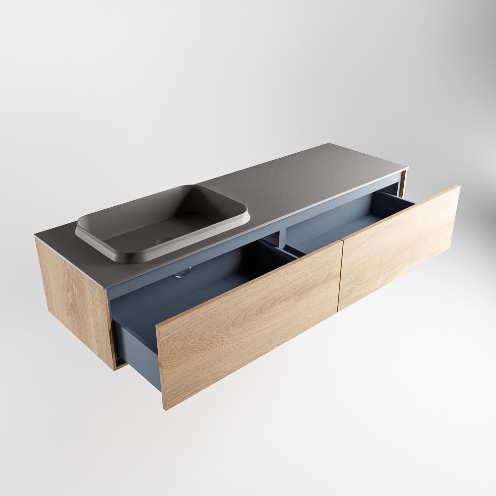 El lavabo de inserción tiene un borde elevado con un lavamanos extra grande y profundo. Las formas redondas del lavamanos emanan una suavidad lujosa. La ubicación del grifo del lavabo en la esquina del lavamanos añade un efecto juguetón adicional. El mueble de baño del conjunto ERIN cuenta con un cajón “push to open”. Esto le proporciona al mueble de baño una apariencia hermosa y aerodinámica que se adapta a cualquier estilo de baño.