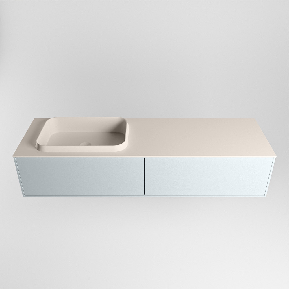 El lavabo de inserción tiene un borde elevado con un lavamanos extra grande y profundo. Las formas redondas del lavamanos emanan una suavidad lujosa. La ubicación del grifo del lavabo en la esquina del lavamanos añade un efecto juguetón adicional. El mueble de baño del conjunto ERIN cuenta con un cajón “push to open”. Esto le proporciona al mueble de baño una apariencia hermosa y aerodinámica que se adapta a cualquier estilo de baño.