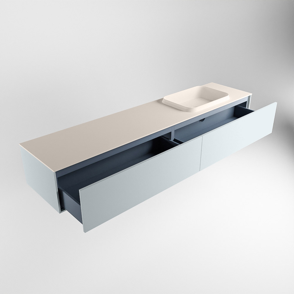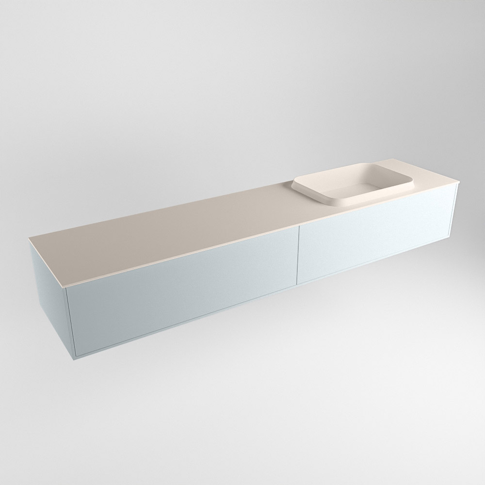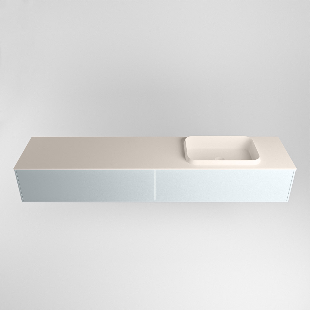 MONDIAZ ERIN 200cm mueble de baño color Clay 2 cajones. Lavabo RIDGE Derecho sin orificio color Linen.