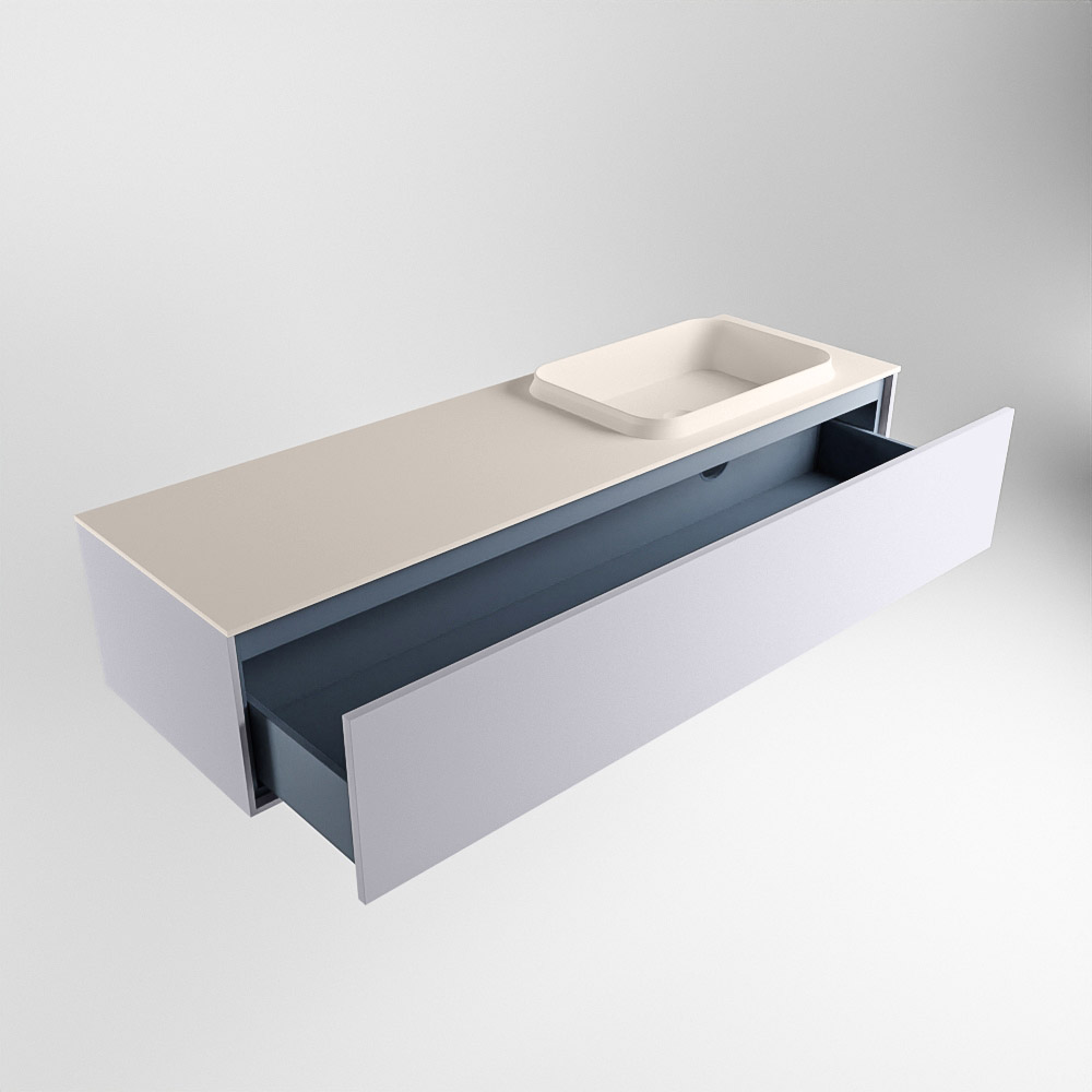 El lavabo de inserción tiene un borde elevado con un lavamanos extra grande y profundo. Las formas redondas del lavamanos emanan una suavidad lujosa. La ubicación del grifo del lavabo en la esquina del lavamanos añade un efecto juguetón adicional. El mueble de baño del conjunto ERIN cuenta con un cajón “push to open”. Esto le proporciona al mueble de baño una apariencia hermosa y aerodinámica que se adapta a cualquier estilo de baño.