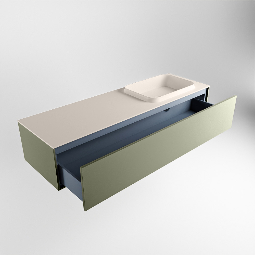 El lavabo de inserción tiene un borde elevado con un lavamanos extra grande y profundo. Las formas redondas del lavamanos emanan una suavidad lujosa. La ubicación del grifo del lavabo en la esquina del lavamanos añade un efecto juguetón adicional. El mueble de baño del conjunto ERIN cuenta con un cajón “push to open”. Esto le proporciona al mueble de baño una apariencia hermosa y aerodinámica que se adapta a cualquier estilo de baño.