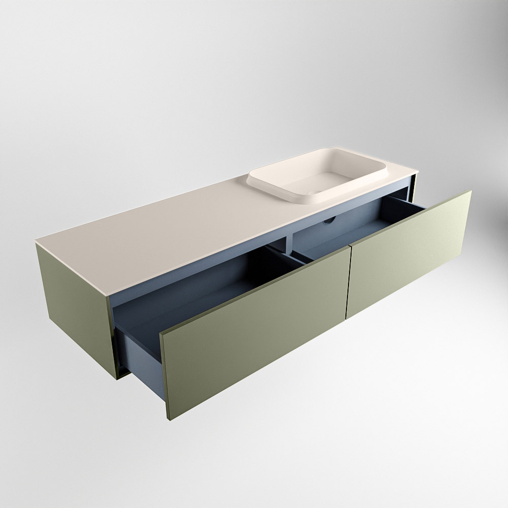 El lavabo de inserción tiene un borde elevado con un lavamanos extra grande y profundo. Las formas redondas del lavamanos emanan una suavidad lujosa. La ubicación del grifo del lavabo en la esquina del lavamanos añade un efecto juguetón adicional. El mueble de baño del conjunto ERIN cuenta con un cajón “push to open”. Esto le proporciona al mueble de baño una apariencia hermosa y aerodinámica que se adapta a cualquier estilo de baño.