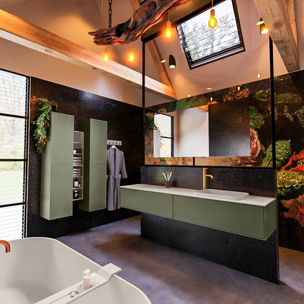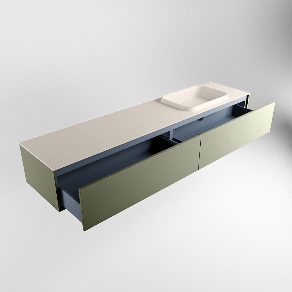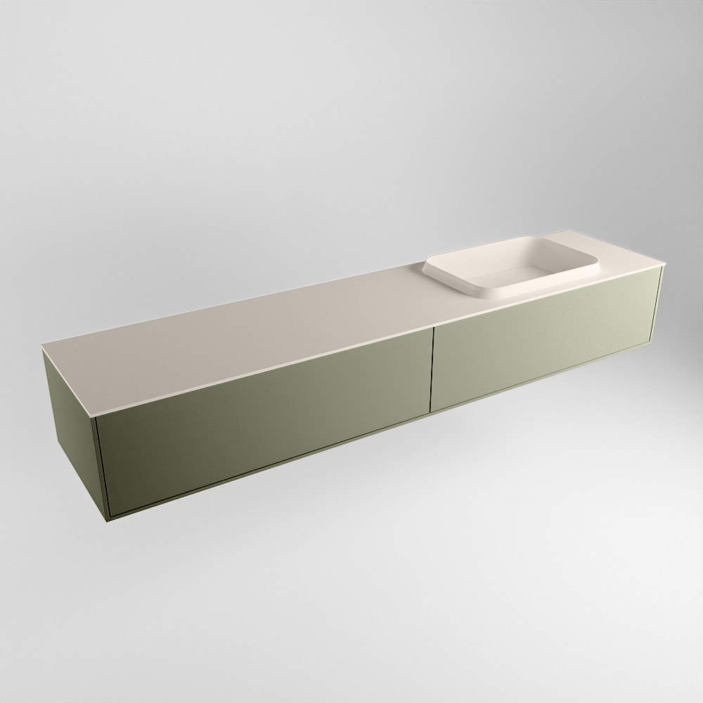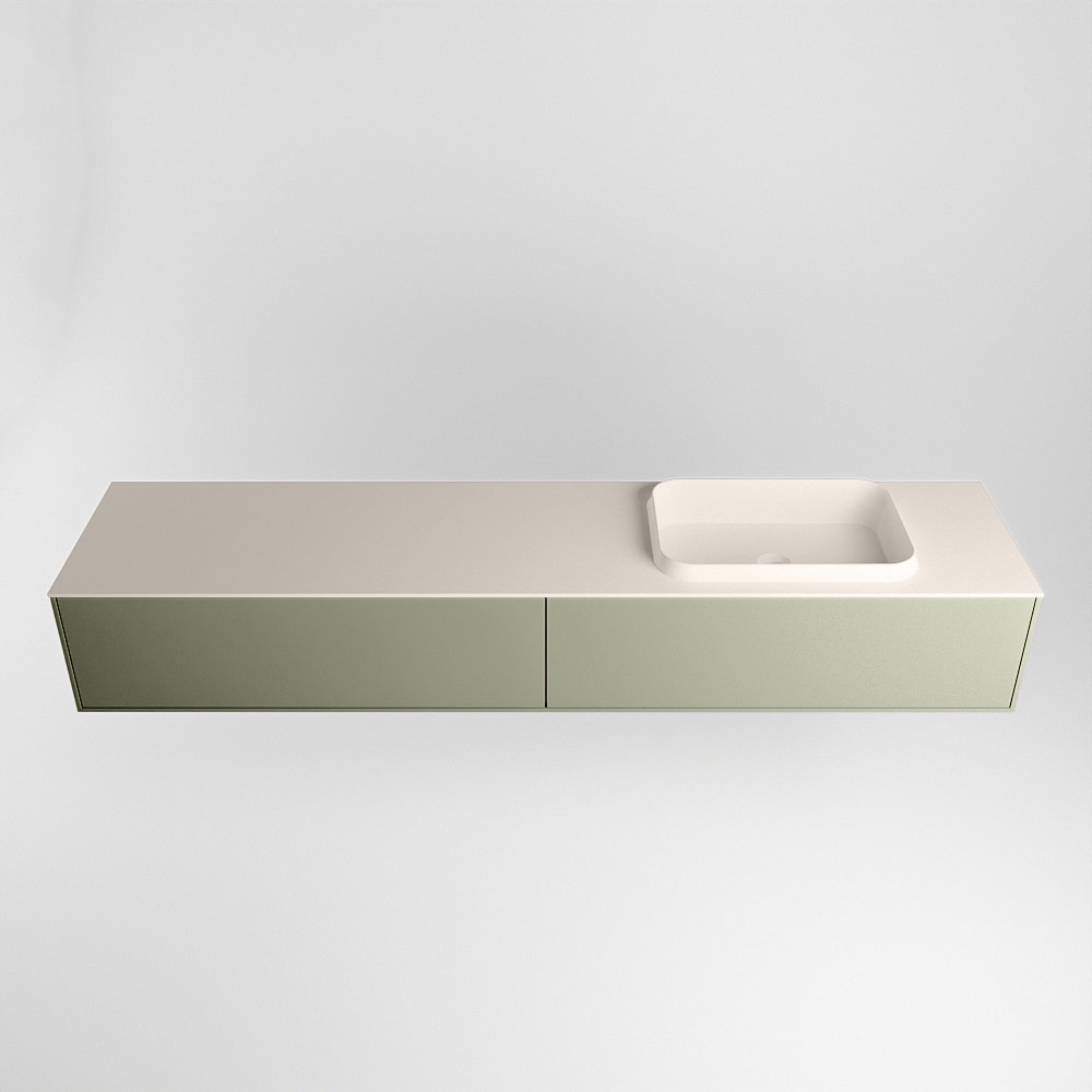 MONDIAZ ERIN 200cm mueble de baño color Army 2 cajones. Lavabo RIDGE Derecho 1 orificio color Linen.