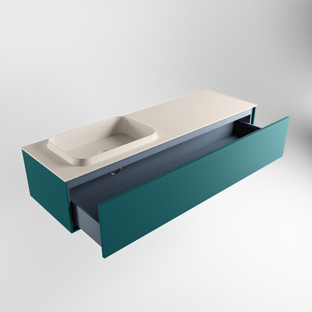 El lavabo de inserción tiene un borde elevado con un lavamanos extra grande y profundo. Las formas redondas del lavamanos emanan una suavidad lujosa. La ubicación del grifo del lavabo en la esquina del lavamanos añade un efecto juguetón adicional. El mueble de baño del conjunto ERIN cuenta con un cajón “push to open”. Esto le proporciona al mueble de baño una apariencia hermosa y aerodinámica que se adapta a cualquier estilo de baño.