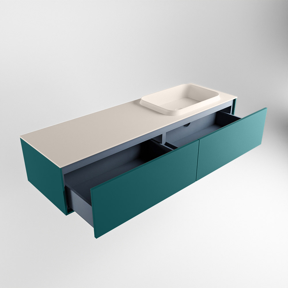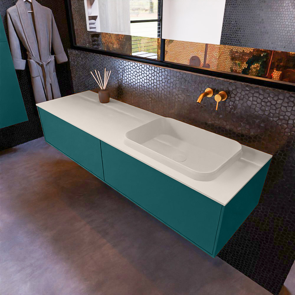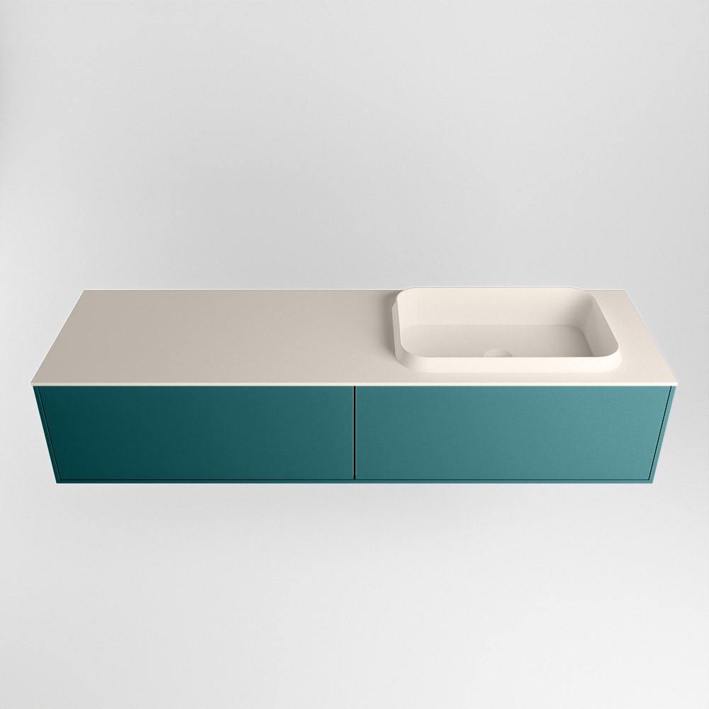 MONDIAZ ERIN 150cm mueble de baño color Smag 2 cajones. Lavabo RIDGE Derecho sin orificio color Linen.