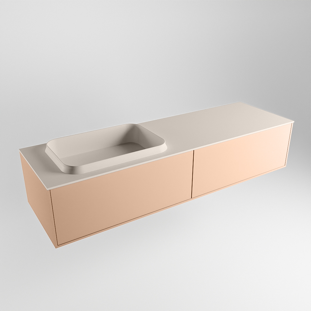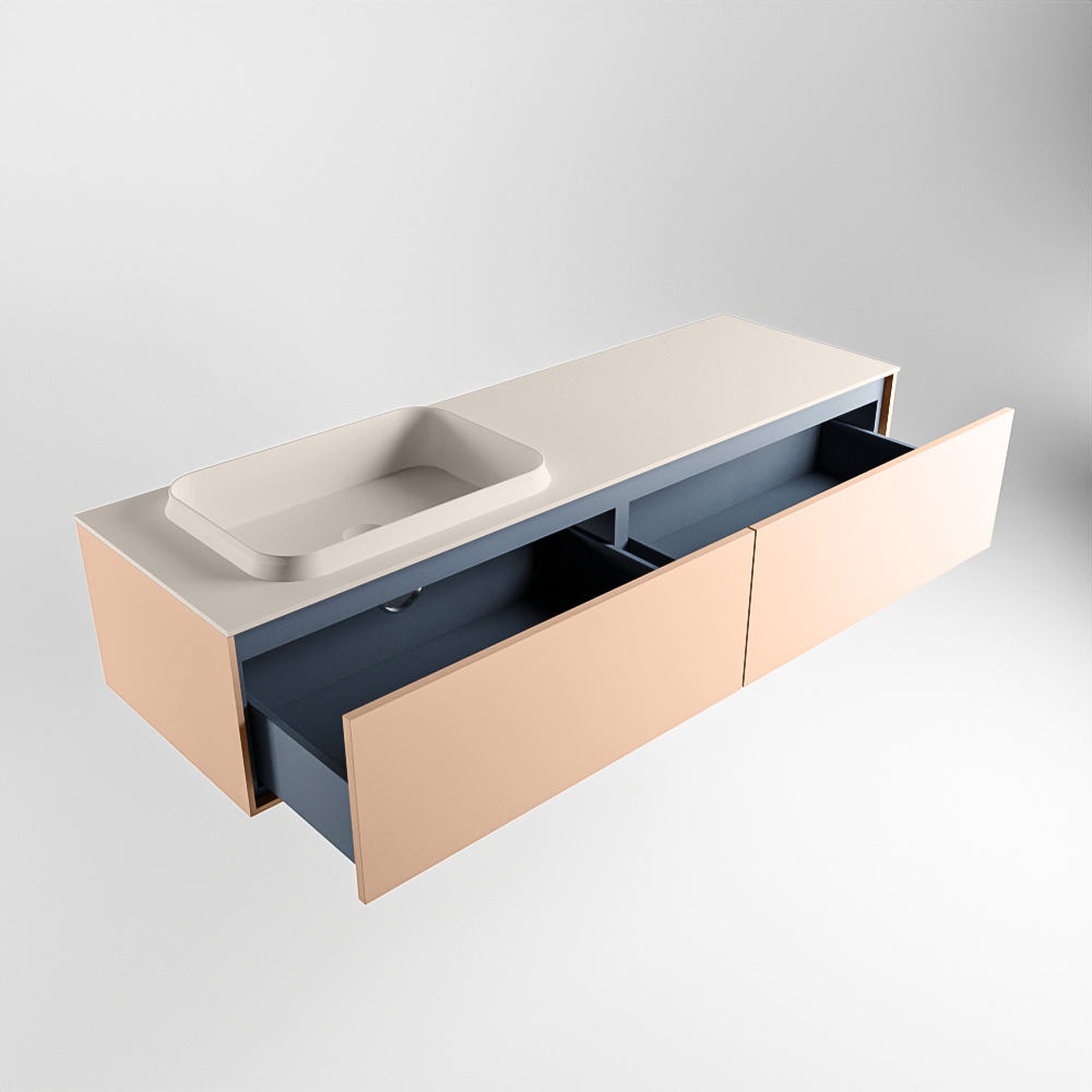 El lavabo de inserción tiene un borde elevado con un lavamanos extra grande y profundo. Las formas redondas del lavamanos emanan una suavidad lujosa. La ubicación del grifo del lavabo en la esquina del lavamanos añade un efecto juguetón adicional. El mueble de baño del conjunto ERIN cuenta con un cajón “push to open”. Esto le proporciona al mueble de baño una apariencia hermosa y aerodinámica que se adapta a cualquier estilo de baño.