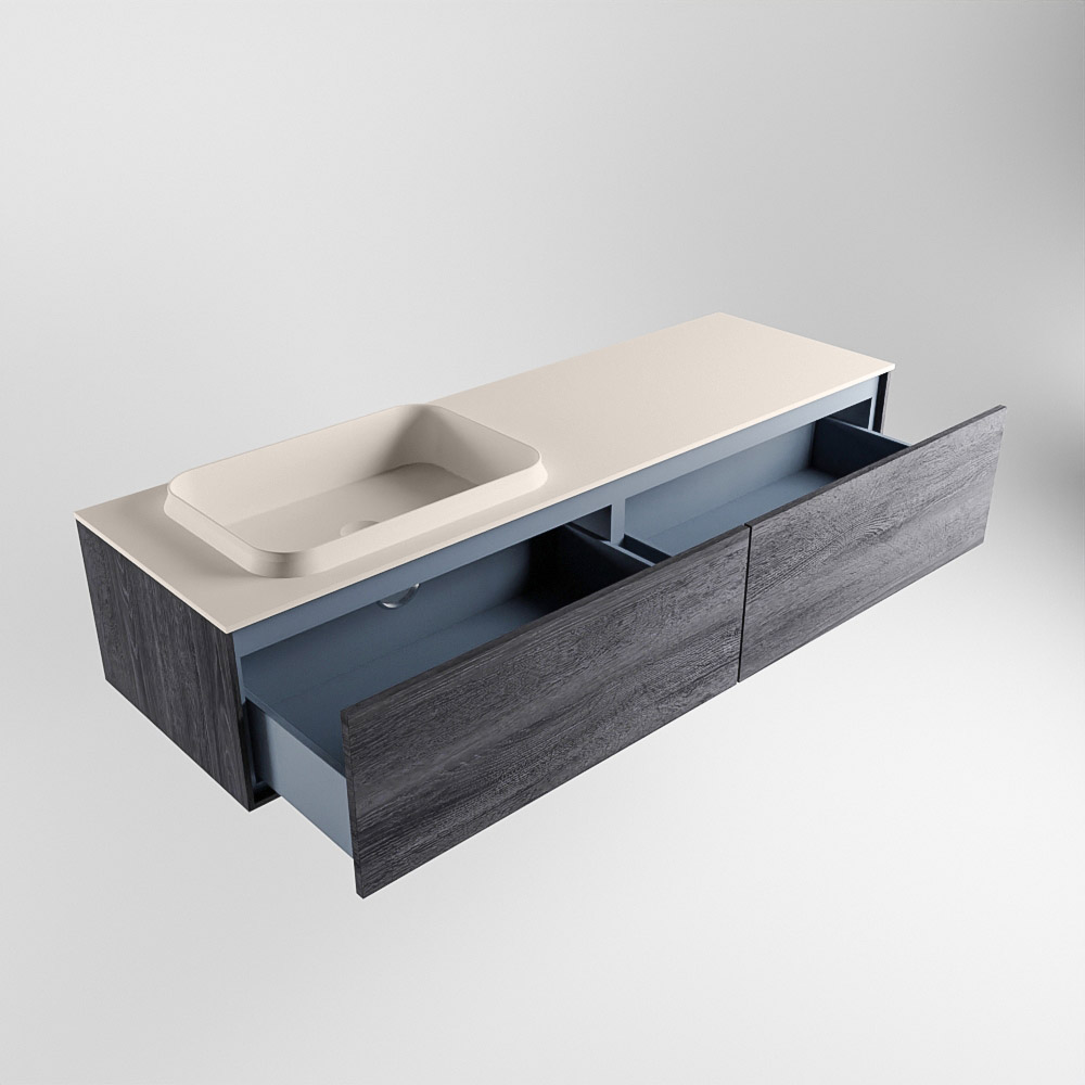 El lavabo de inserción tiene un borde elevado con un lavamanos extra grande y profundo. Las formas redondas del lavamanos emanan una suavidad lujosa. La ubicación del grifo del lavabo en la esquina del lavamanos añade un efecto juguetón adicional. El mueble de baño del conjunto ERIN cuenta con un cajón “push to open”. Esto le proporciona al mueble de baño una apariencia hermosa y aerodinámica que se adapta a cualquier estilo de baño.