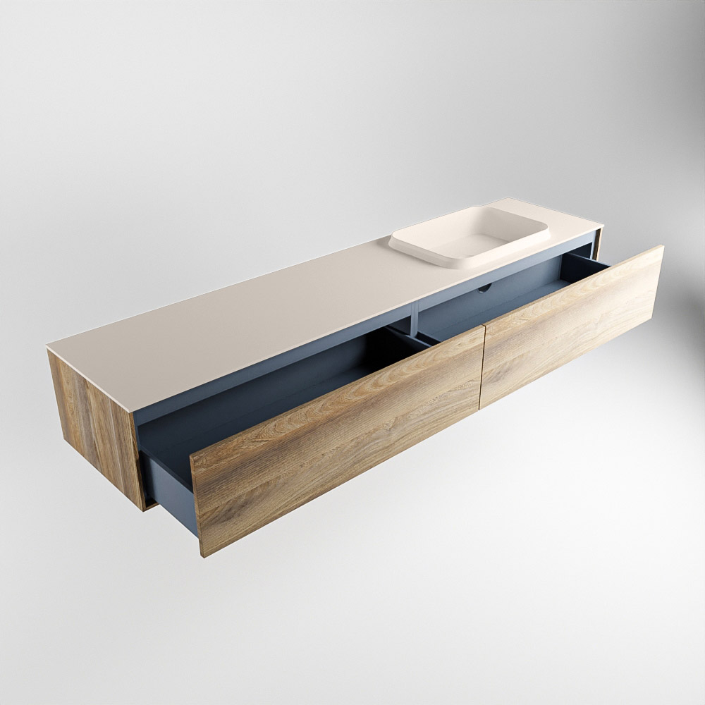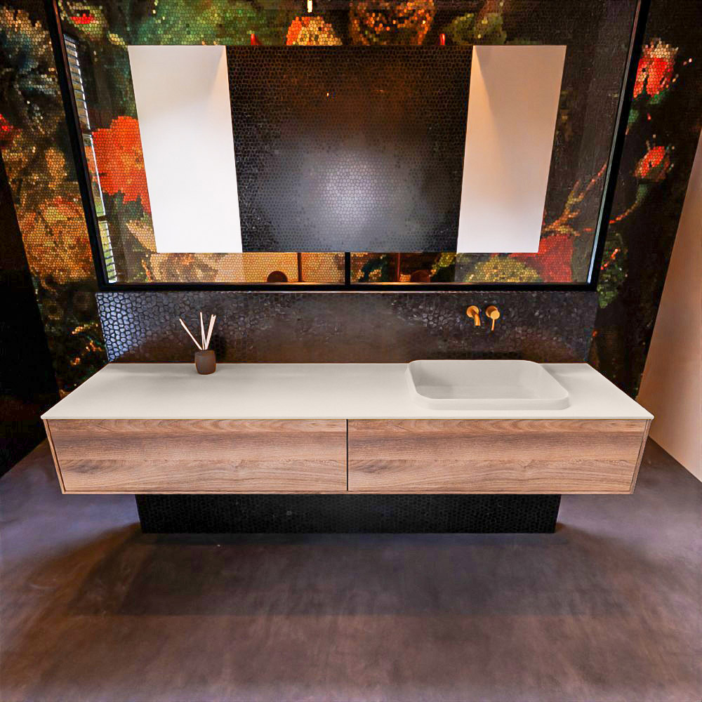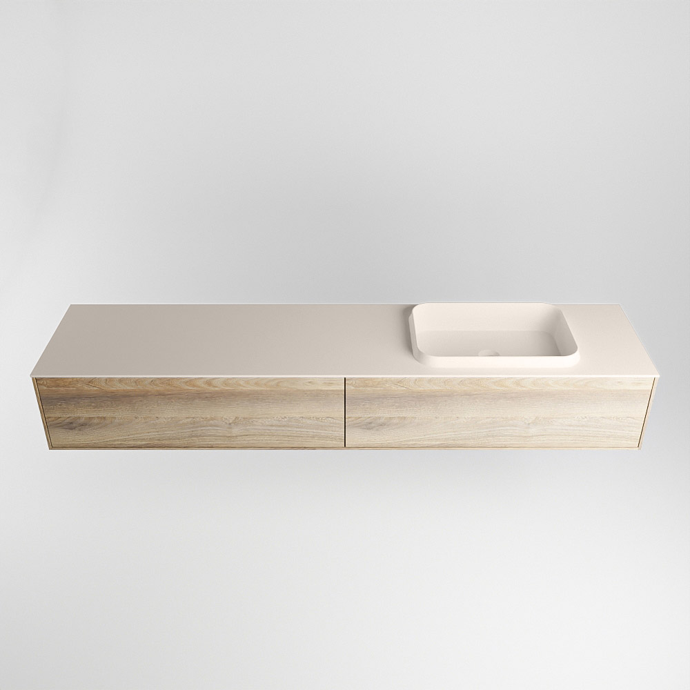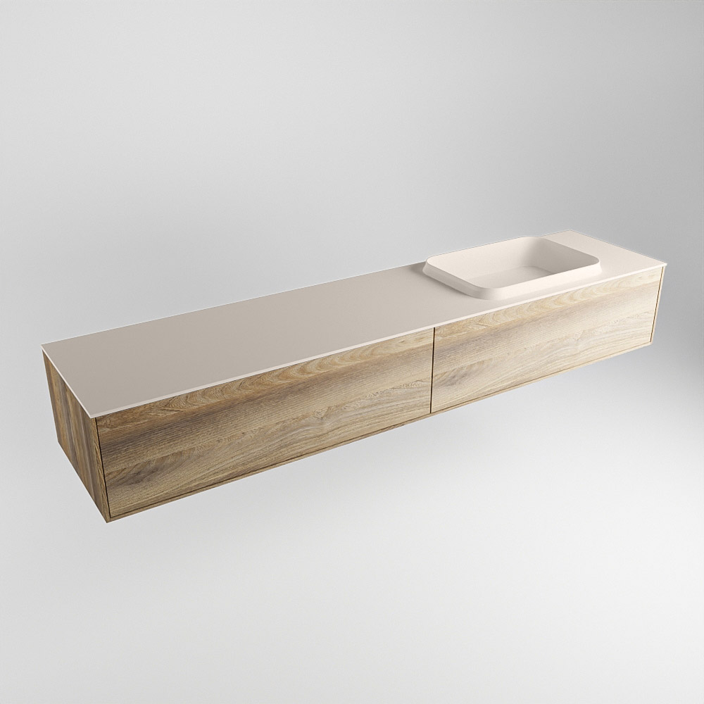MONDIAZ ERIN 200cm mueble de baño color Dark Brown Grey 2 cajones. Lavabo RIDGE Derecho sin orificio color Linen.