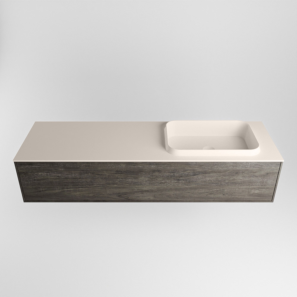 El lavabo de inserción tiene un borde elevado con un lavamanos extra grande y profundo. Las formas redondas del lavamanos emanan una suavidad lujosa. La ubicación del grifo del lavabo en la esquina del lavamanos añade un efecto juguetón adicional. El mueble de baño del conjunto ERIN cuenta con un cajón “push to open”. Esto le proporciona al mueble de baño una apariencia hermosa y aerodinámica que se adapta a cualquier estilo de baño.