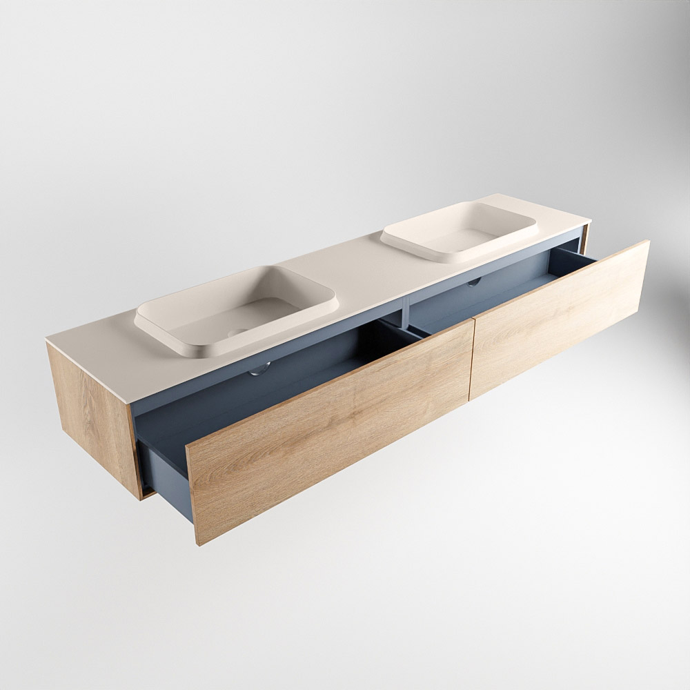 El lavabo de inserción tiene un borde elevado con un lavamanos extra grande y profundo. Las formas redondas del lavamanos emanan una suavidad lujosa. La ubicación del grifo del lavabo en la esquina del lavamanos añade un efecto juguetón adicional. El mueble de baño del conjunto ERIN cuenta con un cajón “push to open”. Esto le proporciona al mueble de baño una apariencia hermosa y aerodinámica que se adapta a cualquier estilo de baño.