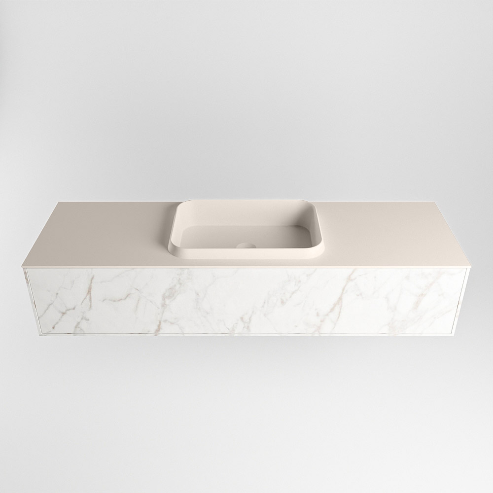El lavabo de inserción tiene un borde elevado con un lavamanos extra grande y profundo. Las formas redondas del lavamanos emanan una suavidad lujosa. La ubicación del grifo del lavabo en la esquina del lavamanos añade un efecto juguetón adicional. El mueble de baño del conjunto ERIN cuenta con un cajón “push to open”. Esto le proporciona al mueble de baño una apariencia hermosa y aerodinámica que se adapta a cualquier estilo de baño.
