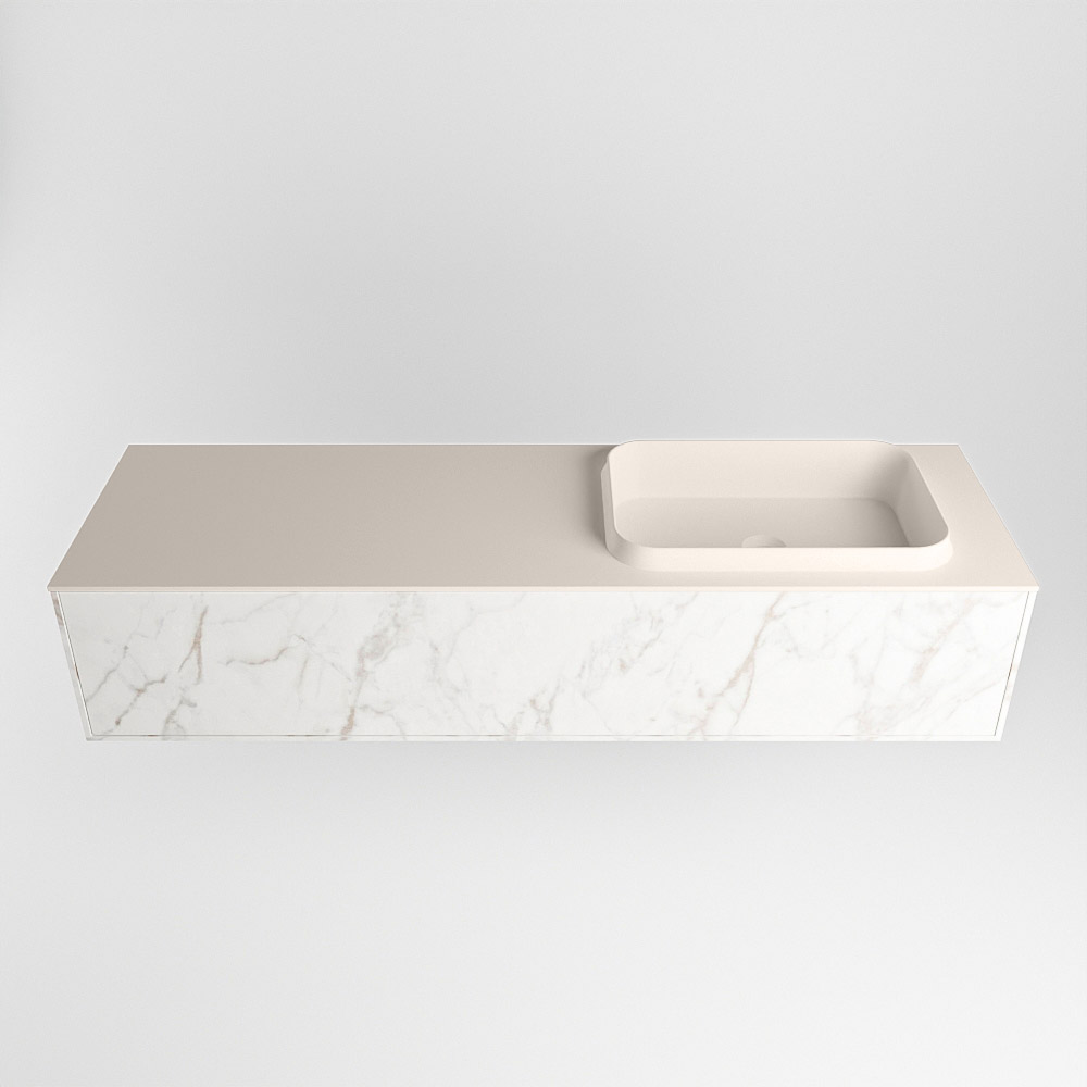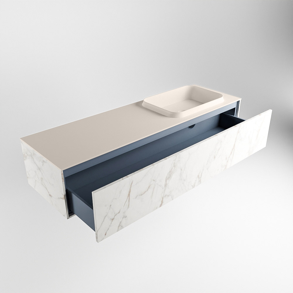 El lavabo de inserción tiene un borde elevado con un lavamanos extra grande y profundo. Las formas redondas del lavamanos emanan una suavidad lujosa. La ubicación del grifo del lavabo en la esquina del lavamanos añade un efecto juguetón adicional. El mueble de baño del conjunto ERIN cuenta con un cajón “push to open”. Esto le proporciona al mueble de baño una apariencia hermosa y aerodinámica que se adapta a cualquier estilo de baño.