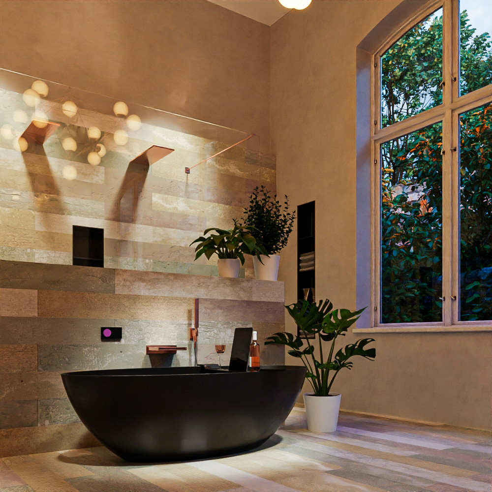 Disfruta de un baño lujoso en la hermosa bañera de Solid Surface FLOAT.