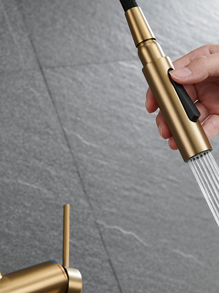 Grifo de cocina extraíble Berna Oro cepillado sistema de ahorro energetico.