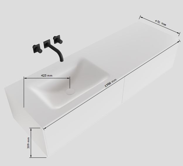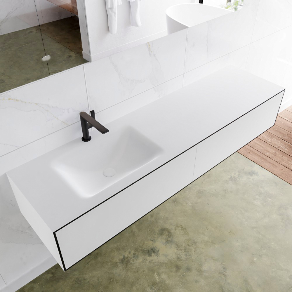 MONDIAZ LAGOM 170cm mueble de baño solid surface Urban 2 cajones lavabo CLOUD Izquierda 1 orificio