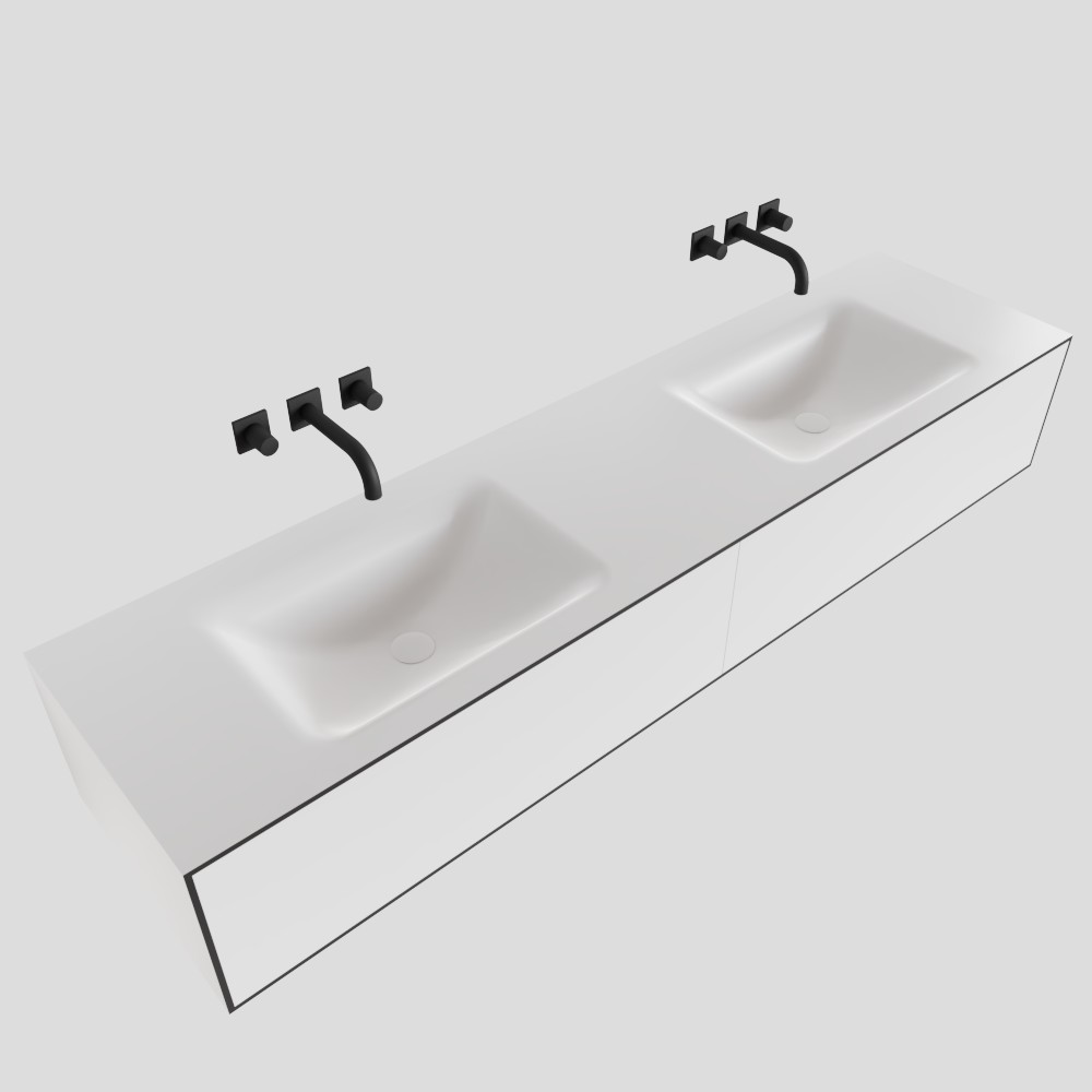 MONDIAZ LAGOM 180cm mueble de baño solid surface Talc 2 cajones lavabo CLOUD Doble sin orificio