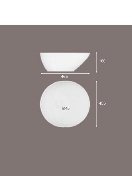 Lavabo cerámico redondo Saja blanco tiene una bonita forma de bol muy fina y elegante, con el seno con líneas curvas hacia el desagüe, con una prolon está fabricado en el original Solid Surface de primera calidad. Sin rebosadero, ni orificio para grifo.