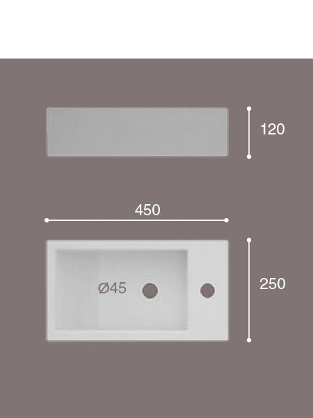 Lavabo Solid Surface rectangular Square Line 50x32x8 cm blanco Adrihosan