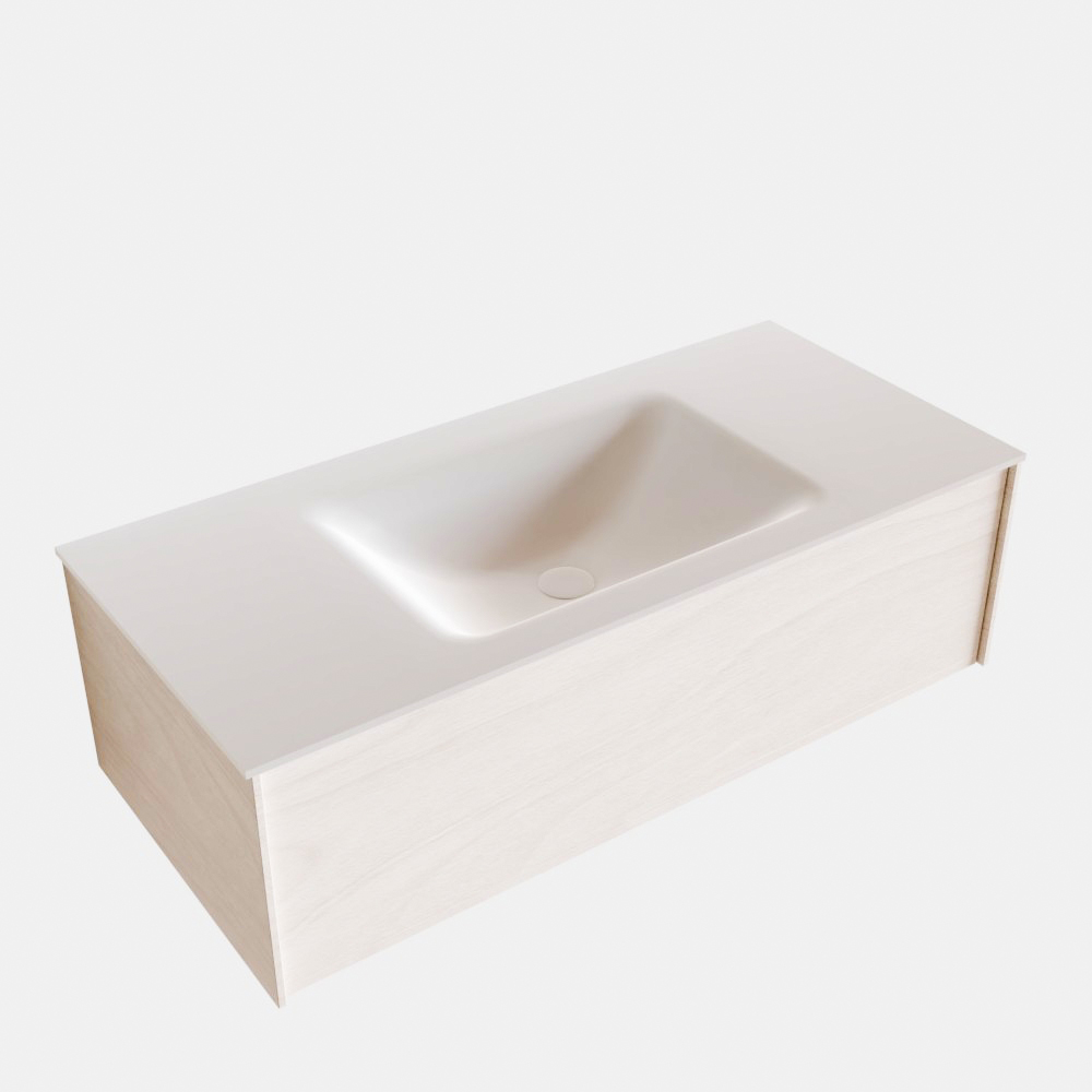 El conjunto de muebles LUSH está disponible en 4 hermosos colores de melamina que añaden una apariencia cálida y natural a tu baño. En la serie LUSH, puedes elegir entre 1 o 2 cajones y optar por una lavabo o un lavamanos. Además, puedes decidir si quieres con o sin agujero para el grifo y ajustar la posición del lavabo/lavamanos. Esta serie ofrece opciones versátiles para personalizar el mueble de baño según tus necesidades y gustos específicos.