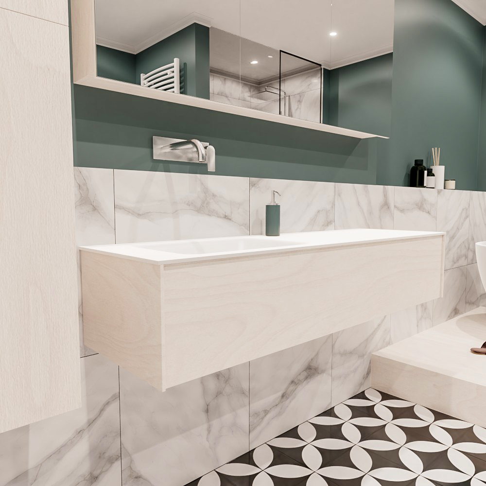 El conjunto de muebles LUSH está disponible en 4 hermosos colores de melamina que añaden una apariencia cálida y natural a tu baño. En la serie LUSH, puedes elegir entre 1 o 2 cajones y optar por una lavabo o un lavamanos. Además, puedes decidir si quieres con o sin agujero para el grifo y ajustar la posición del lavabo/lavamanos. Esta serie ofrece opciones versátiles para personalizar el mueble de baño según tus necesidades y gustos específicos.