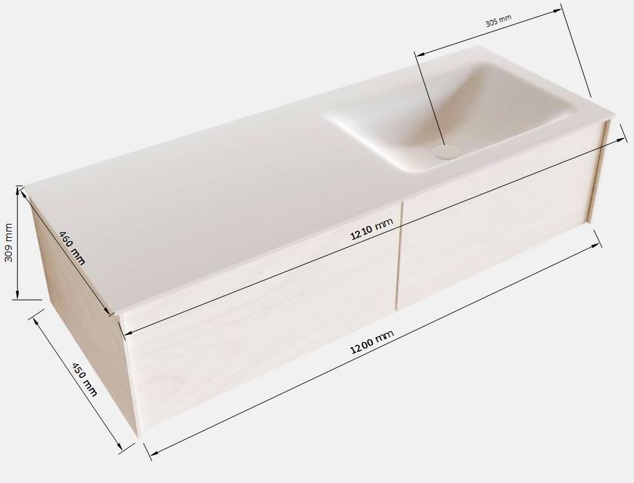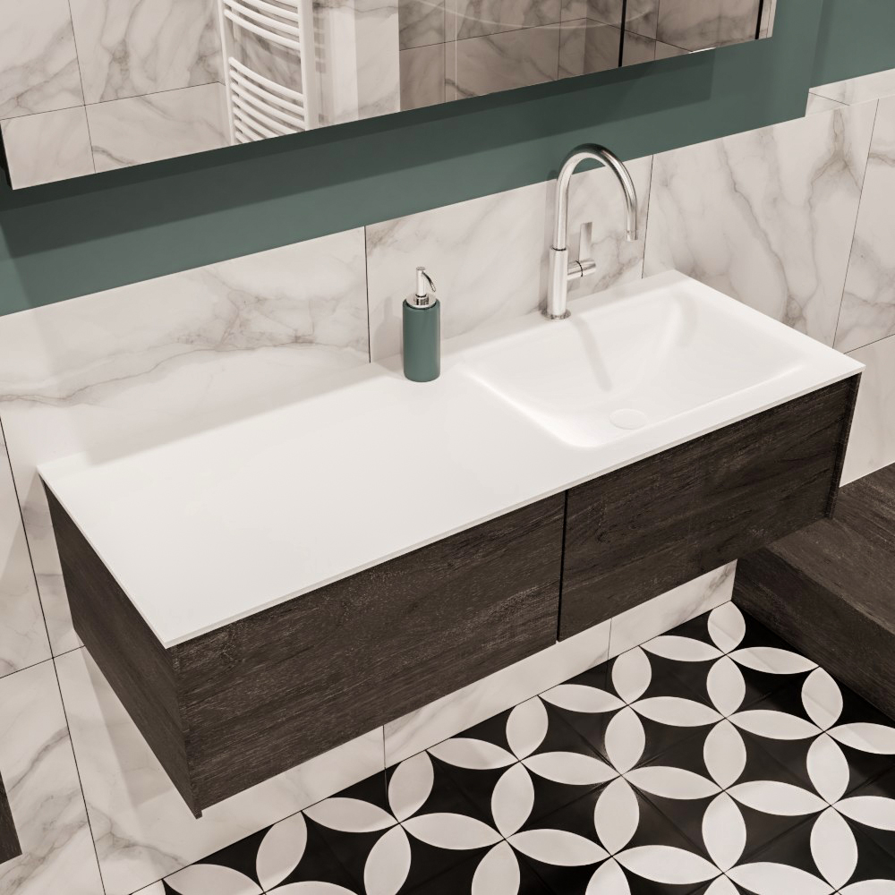 El conjunto de muebles LUSH está disponible en 4 hermosos colores de melamina que añaden una apariencia cálida y natural a tu baño. En la serie LUSH, puedes elegir entre 1 o 2 cajones y optar por una lavabo o un lavamanos. Además, puedes decidir si quieres con o sin agujero para el grifo y ajustar la posición del lavabo/lavamanos. Esta serie ofrece opciones versátiles para personalizar el mueble de baño según tus necesidades y gustos específicos.