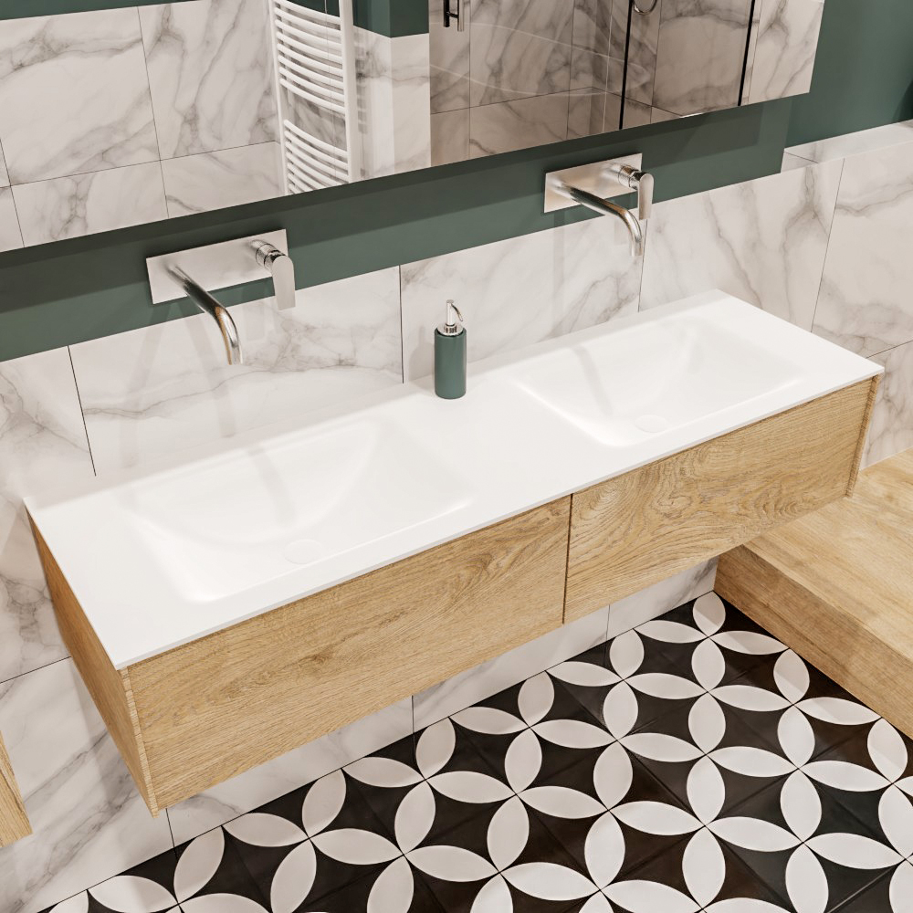 El conjunto de muebles LUSH está disponible en 4 hermosos colores de melamina que añaden una apariencia cálida y natural a tu baño. En la serie LUSH, puedes elegir entre 1 o 2 cajones y optar por una lavabo o un lavamanos. Además, puedes decidir si quieres con o sin agujero para el grifo y ajustar la posición del lavabo/lavamanos. Esta serie ofrece opciones versátiles para personalizar el mueble de baño según tus necesidades y gustos específicos.