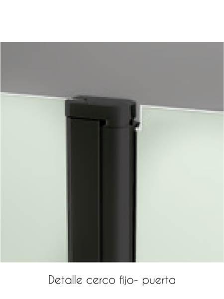 Mampara de ducha vaivén Prisma 1P perfil negro antical . Mampara abatible con perfilería negra.