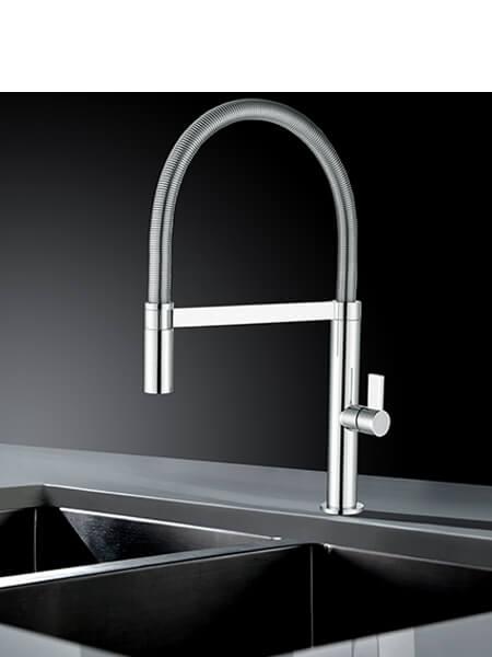 Mezclador fregadero extraíble Pamiers cromado. Monomando de cocina tipo industrial pero con diseño muy moderno y funcional.