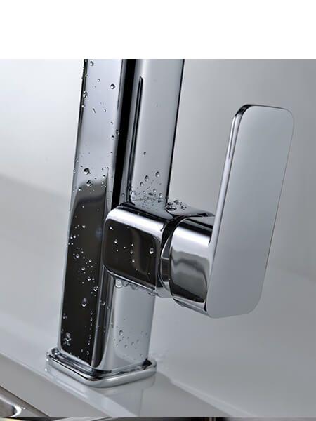 Su estética robusta es a su vez elegante y limpia, haciendo de este grifo un monomando moderno, funcional y proporcionado especialmente diseñado para espacios elegantes.