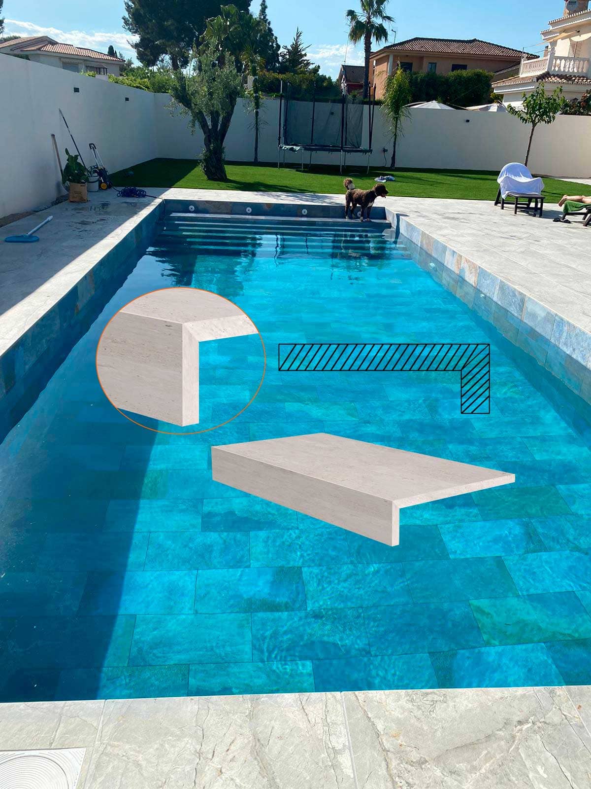 El peldaño antideslizante nos asegura, en zonas donde hay mucho peligro de lluvia, que no resbalemos al pisar el pavimento. Nuestro pavimento antideslizante está certificado como C3 o R11. Ideal para colocar en zonas de alrededor de piscina, también es apto donde la normativa exija la instalación de un azulejo anyideslizante certificado.