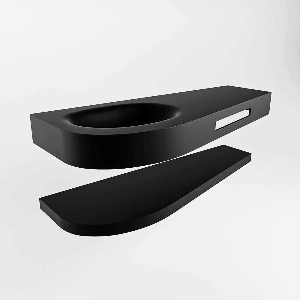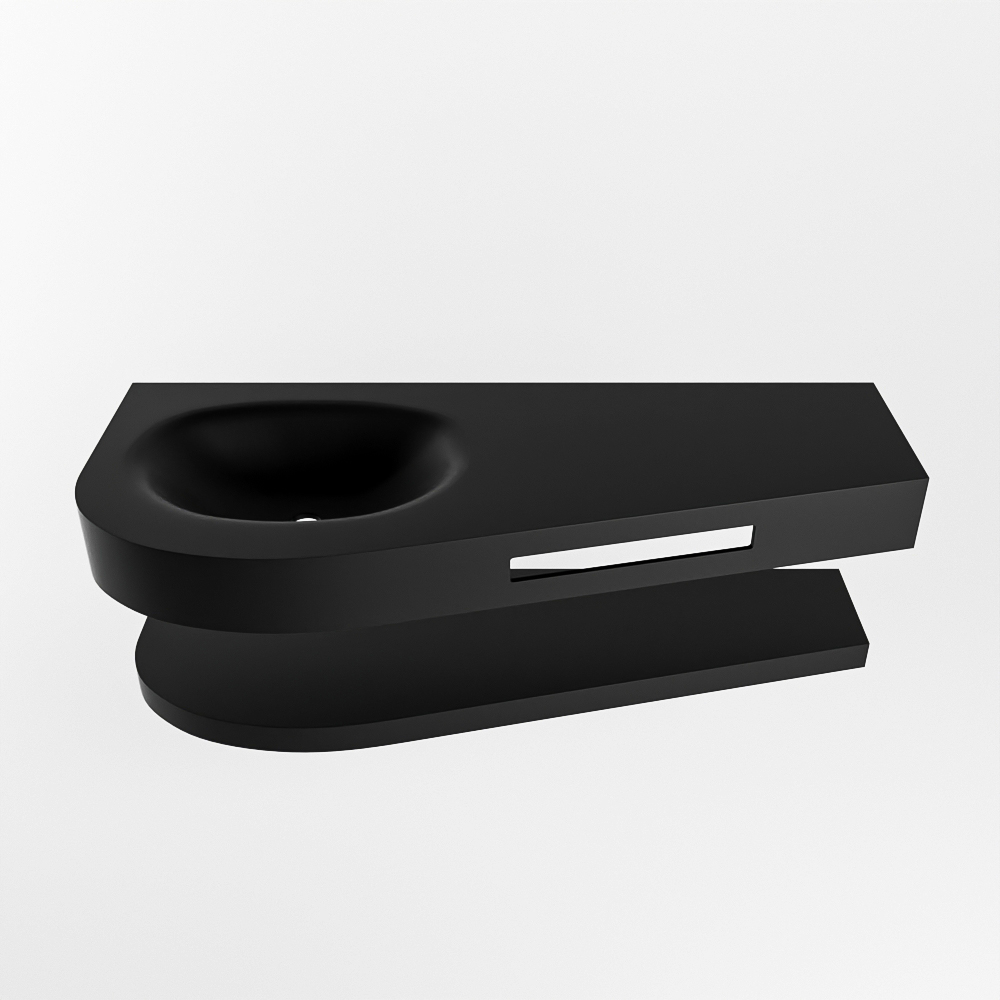 MONDIAZ RIVA 120cm lavabo con estante color Urban. Lavabo DULCET Izquierda sin orificio, color Urban.